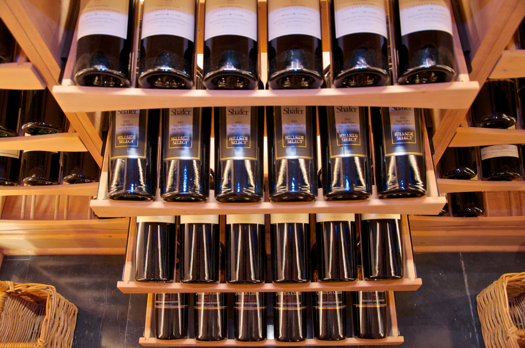 Neck-out storage is what most people picture when they think of a classic underground “cave.” The bottles are stored perpendicular to the wall, with the corks facing you.